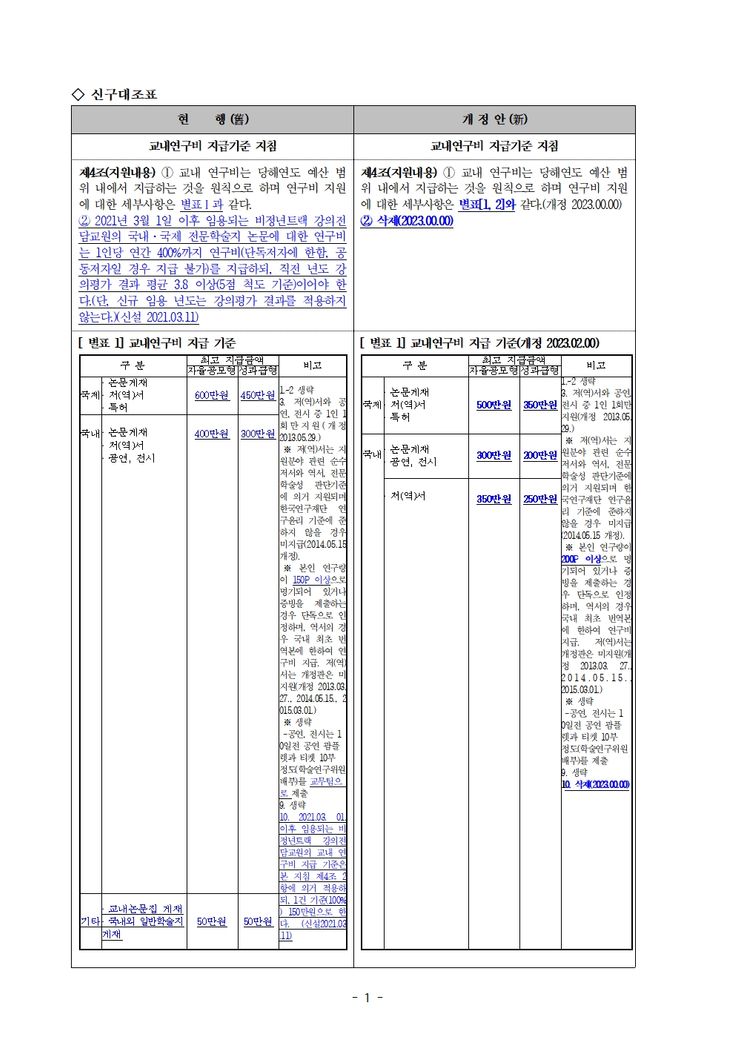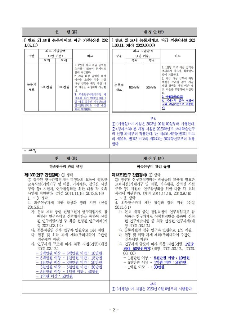 2. [교수연구비지급기준지침] 및 [학술연구비관리규정] 변경,