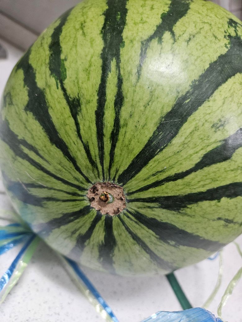수박 색깔도 좋고 꼭지도 튼튼한게 보이기에는 될 것 같아 보이는데 직접 먹어 보지 않는 이상 모릅니다 예전에 그런 수박 많이 사 보았는데 통통 소리도 나고 먹었을 때 맛이 없는 수박이 많이 있었지요