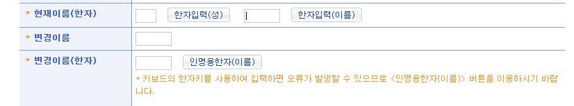 변경이름 란과 변경이름(한자) 란에 성 안 적고 개명할 이름만 적는거 맞나요?