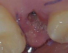 신경치료 후 크라운 씌웠던 치아에 염증이 생겨 발치하고 뼈이식 후 당일 나사 식립까지 마쳤습니다.