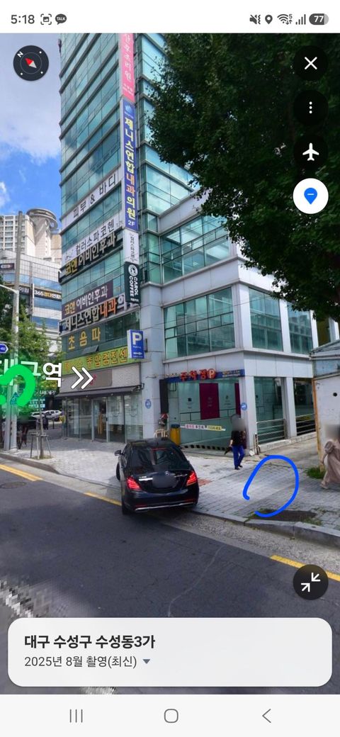 사진의 파란 동그라미 부분이 사고 지점이고 밑의 초록 점이 자전거 겸용 표지판이 있는 곳입니다.