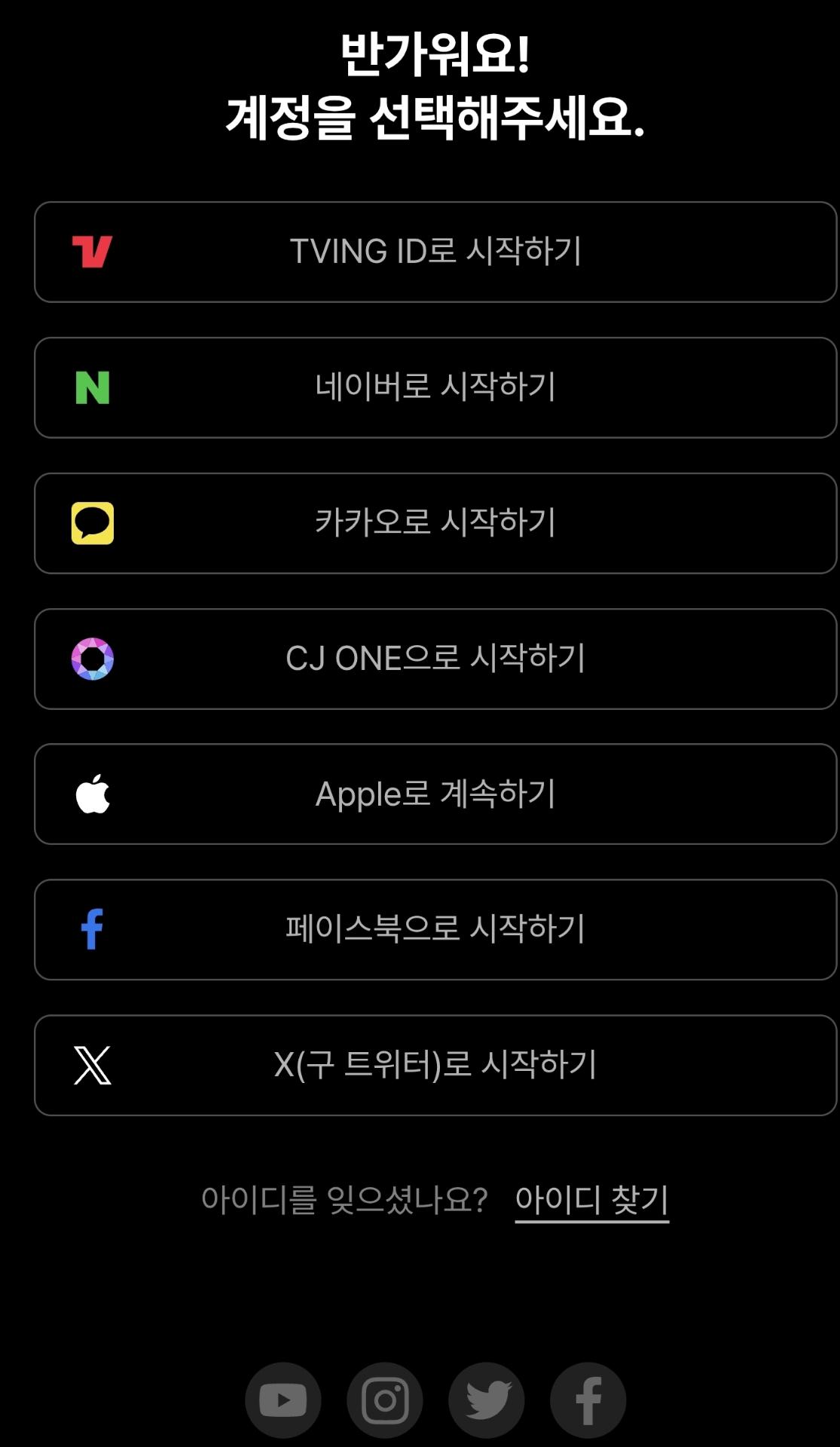 티빙 로그인 하기 들어가시면 맨 아래쪽에 아이디 찾는 부분이 나오네요!!