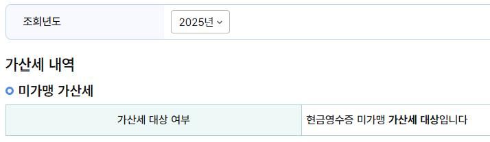 현재 귀속년도 2024년도 종합소득을 신고 중입니다. 현금영수증 미가맹으로 가산세가 나와 가산세를 신고서에 작성을 해야 하는데 해당 과세기간 x 미가입기간/365 식으로 계산을 한다고 아는데 해당 과세기간이 2024년 소득인가요? 참고로 현금영수증 미가맹 가산세 대상은 2025년 기준 대상으로 안내 받았습니다.