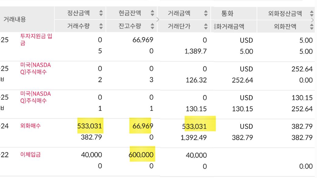 해외주식 매수금액과 예수금과의 차액 발생이유가 뭔가요?