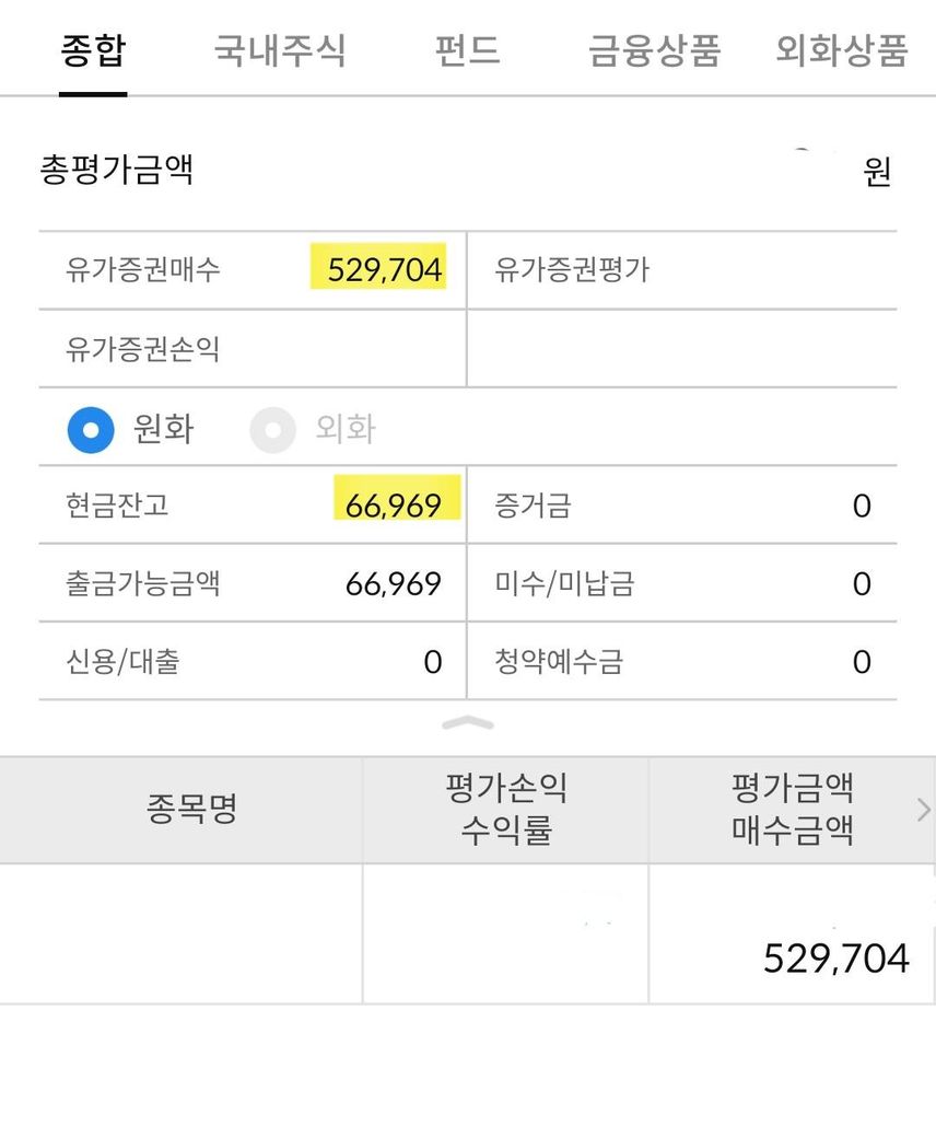 매수금액이 529,704원인데 예수금은 66,969예요.