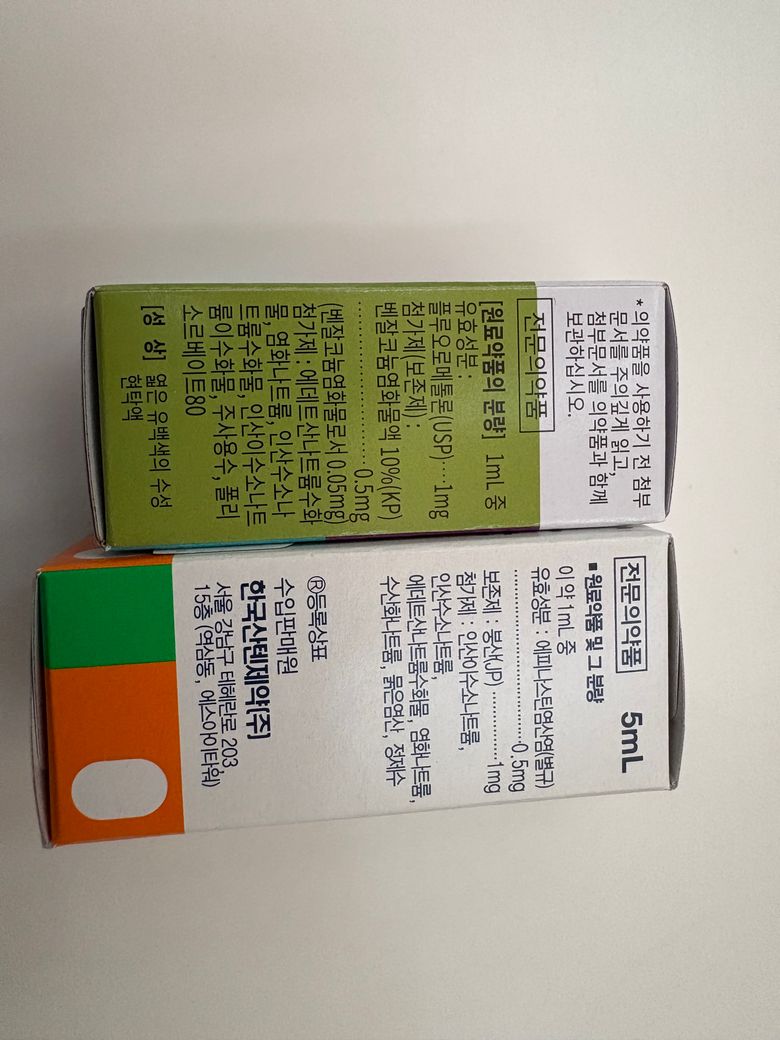 두 안약은 최소 5분간격을 두고 넣으셔야합니다.