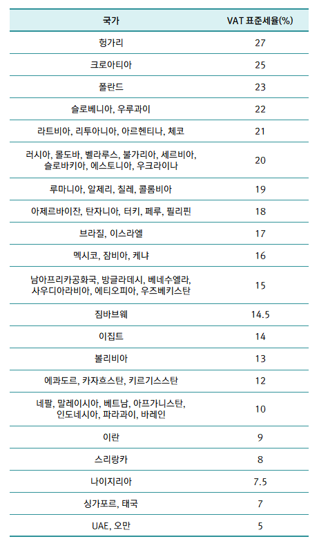 부가가치세 최고 세율 국가는 "헝가리"이며