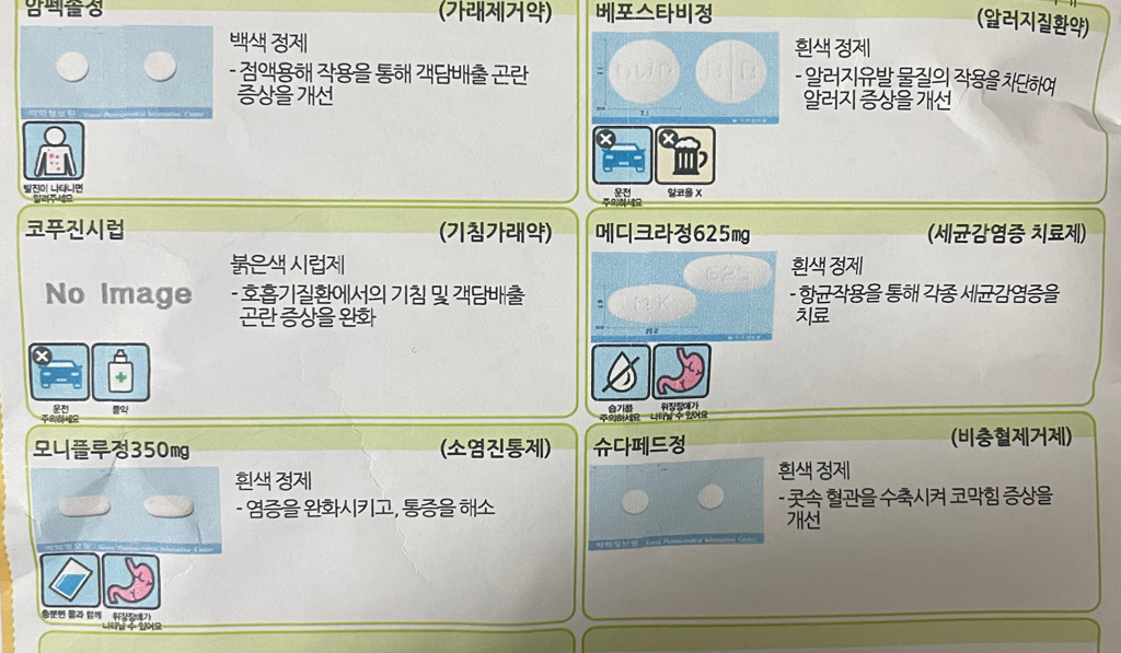 감기로 낮아진 면역력을 통해 발생할 수 있는 2차 감염을 방지하기 위해 항생제가 처방되는 경우가 많으며, 증상이 심한 경우 약을 처방 받은 병원에 문의하여 항생제 종류를 변경하거나 용량을 낮추는 것을 권장드립니다.