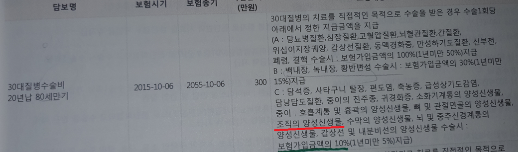 어떤 담보에서 30만원만 지급 된 건지 모르겠지만, 제 생각으론 질병수술비 30만원과 30대질병수술비(조직의양성신생물)에서 30만원해서 총60만원이 나와야 하는 것 아닌지 궁금해서요.