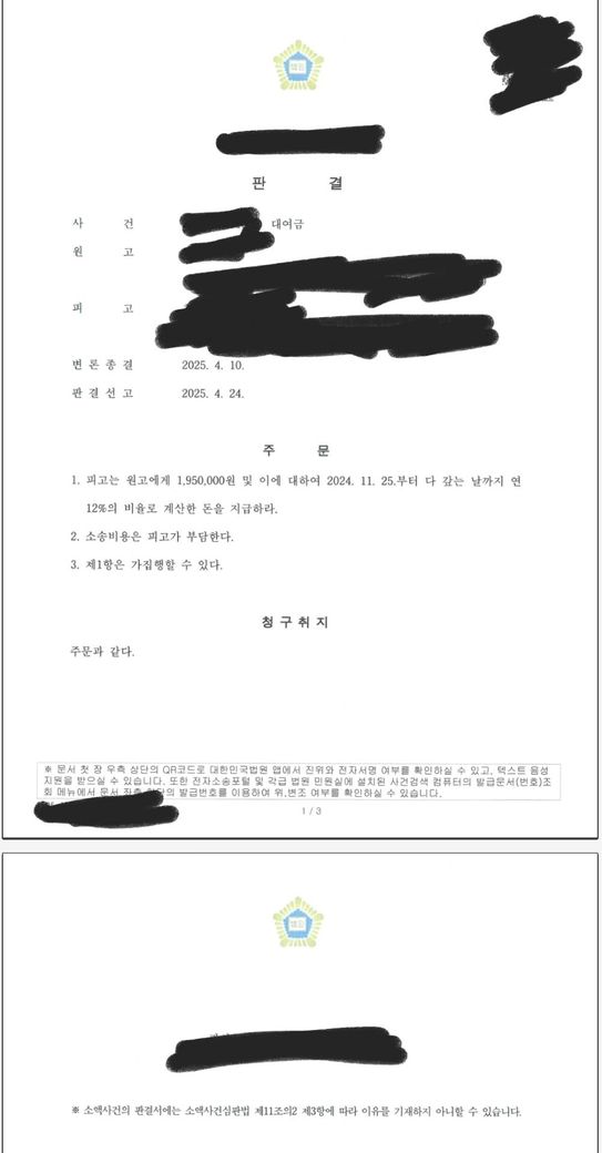 이럴때는 원고가 제시한 2번째 사진처럼 저 금액만 주면 되는건가요?