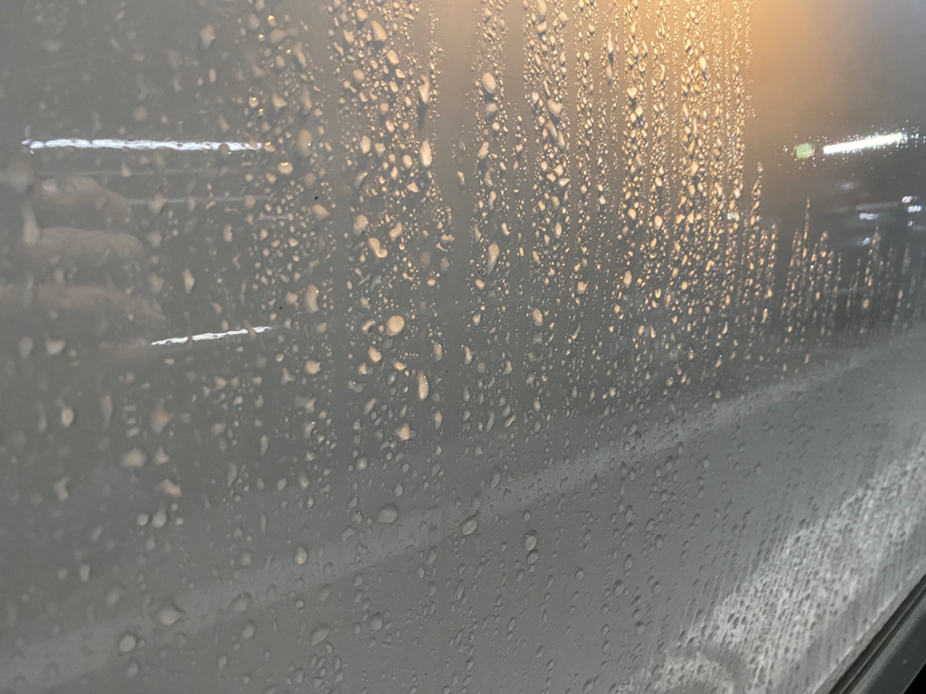 오늘 비가 오는 야외에 주차되어 있었는데 퇴근할 때 보니까 유리와 도장면에 발수효과가 싹 사라졌어요. 출근할 때는 발수효과가 살아 있었거든요. 이런 경우가 생길 수 있나요?