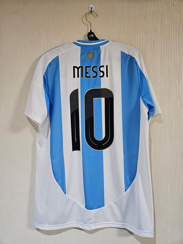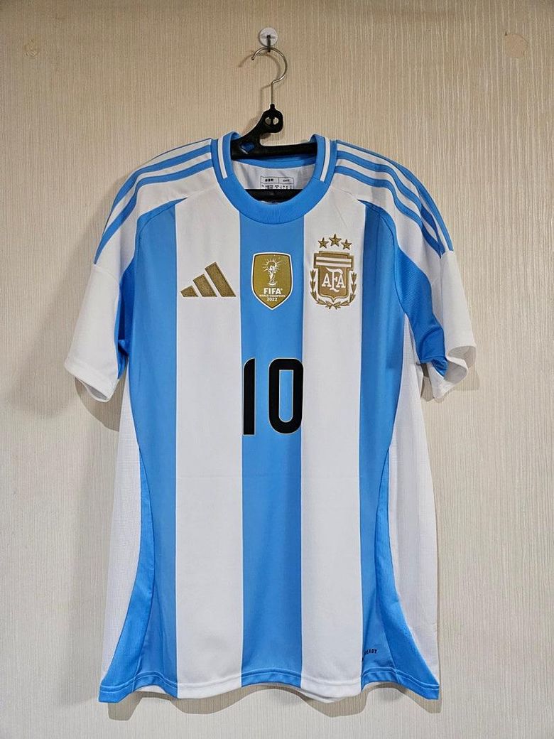 안녕하세요 축구를 좋아하기도 하고 메시의 팬이라서 아르헨티나 국가대표 홈유니폼 구매했는데 어떤가요 이쁜가요?ㅎㅎ 월드컵 우승횟수를 의미하는 황금별도 3개 !!
