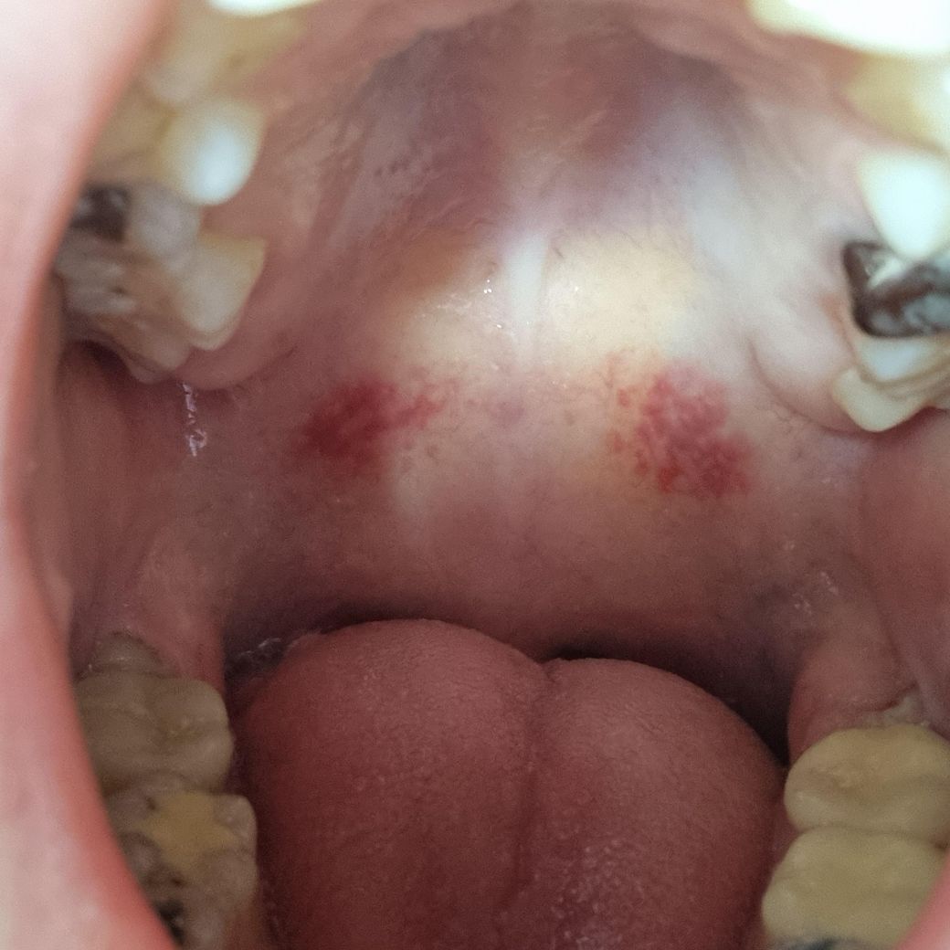 입천장에 빨간색이 보이는데 아프거나 하지는 않아요