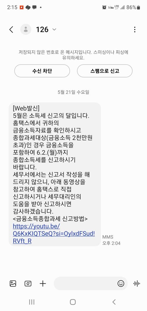 국세청에서 금융소득세 문자가 왔는데요.