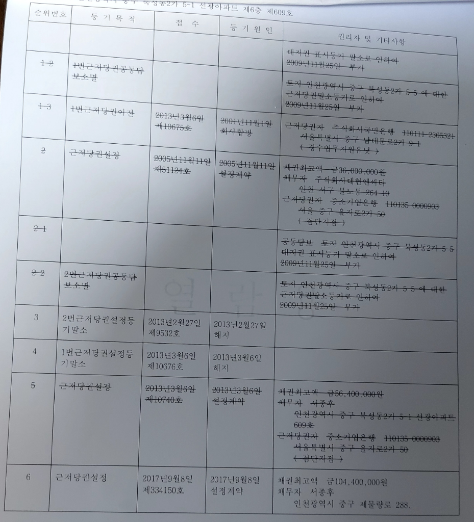 우선 갑구 , 을구를 통합하여 등기접수일자를 기준으로 가장빠른 날짜별 정리를 하시고, 해당 정리된 내역중 가장빠른 날짜의 근저당,저당, 가압류, 압류, 경매개시결정등기가 말소기준권리가 되고 이후 권리는 경매이후 모두 소멸하게 됩니다. 만약 전세권과 같은 용익물권이 있거나 , 가등기 중 소유권에 관련한 가등기는 인수되는 권리로써 소멸되지 않고 인수됩니다.