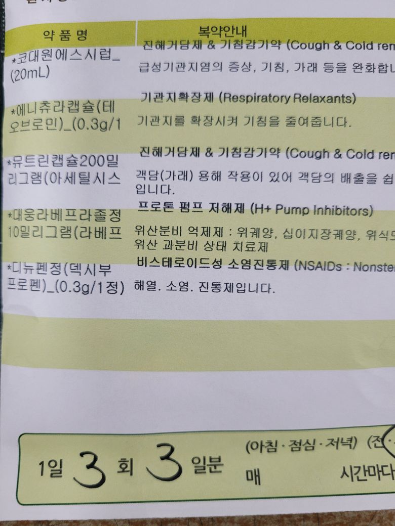 하나는 감기로 인하여 처방 받은 약이고