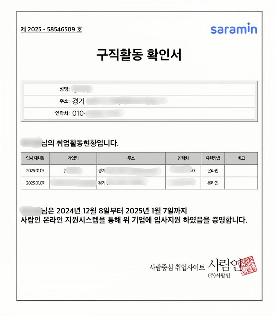 Q1. 실업급여인정일 당일 날 (1월 13일 월요일) 사람인 구직활동 확인서, 구직외활동 제출하면 되나요?