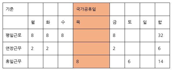 주중에 공휴일이 끼었을때 8시간 근무하면 소정근로시간 포함으로 보는건지.. 연장 근로로 보는건지 헷갈리네요..