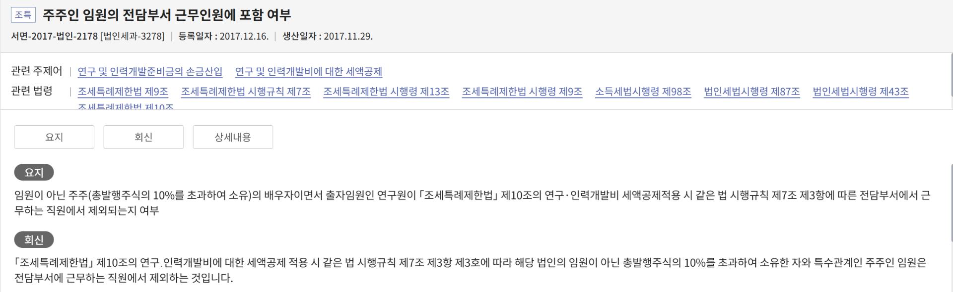 해당 연구원의 인건비는 연구·인력개발비 세액공제 대상 ‘전담부서 근무 직원’ 범위에서