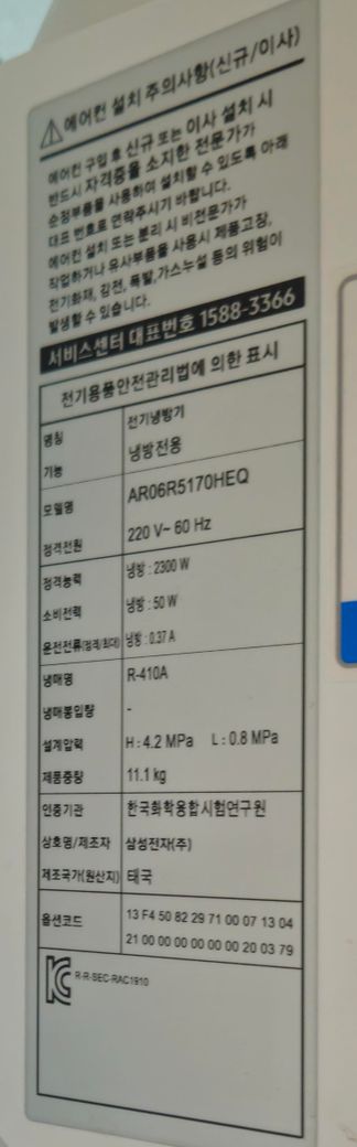 집에 벽걸이 에어컨 하나 있는데 인버터인지 정석형인지 봐주세요.
