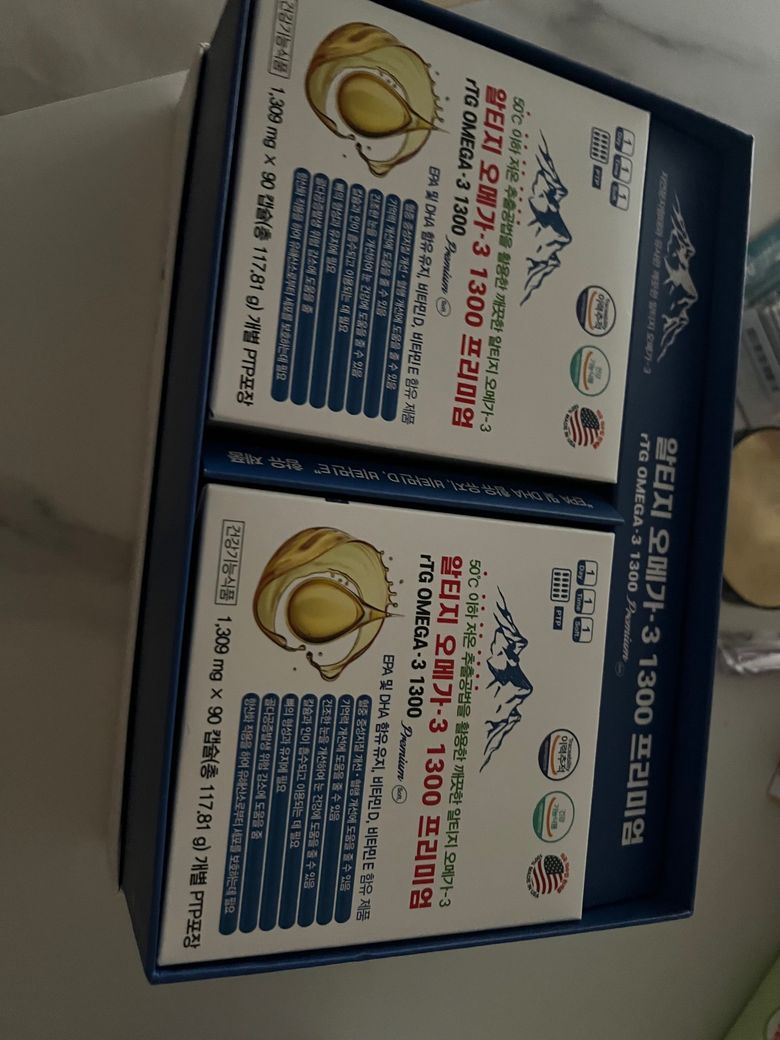 비타민 D는 하루에 5000IU까지 복용하는 영양제도 있으며, 사진 속의 비타민 D와 오메가 3를 모두 복용하시더라도 하루에 비타민 D를 3000IU 복용하시는 것이기 때문에 용량에 대한 걱정은 하지 않으셔도 괜찮습니다. 보통 오메가 3를 평가할 때는 원료 생산 회사, 함량, 세대 등을 기준으로 평가합니다. 사진 속의 제품은 3세대 오메가 3인 rTG 오메가 3로 흡수율이 높은 형태이기 때문에 무난하게 복용하실 수 있는 오메가 3로 보입니다.