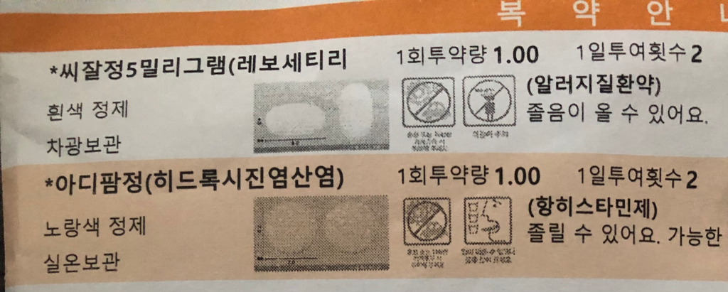 비슷한 처방이지만 씨잘정은 졸음 부작용이 적다는 특징이 있습니다.
