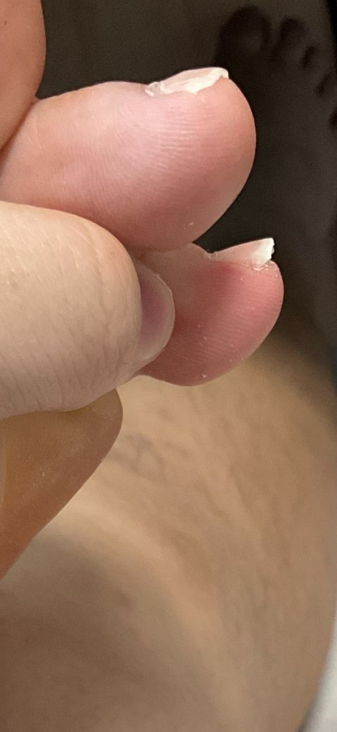 사진상 발톱 끝부분이 발톱바닥(조갑상, nail bed)에서 분리되어 들려 있는 상태로 보입니다. 수년간 지속되었다면 가장 가능성이 높은 것은 조갑박리증(onycholysis)입니다.