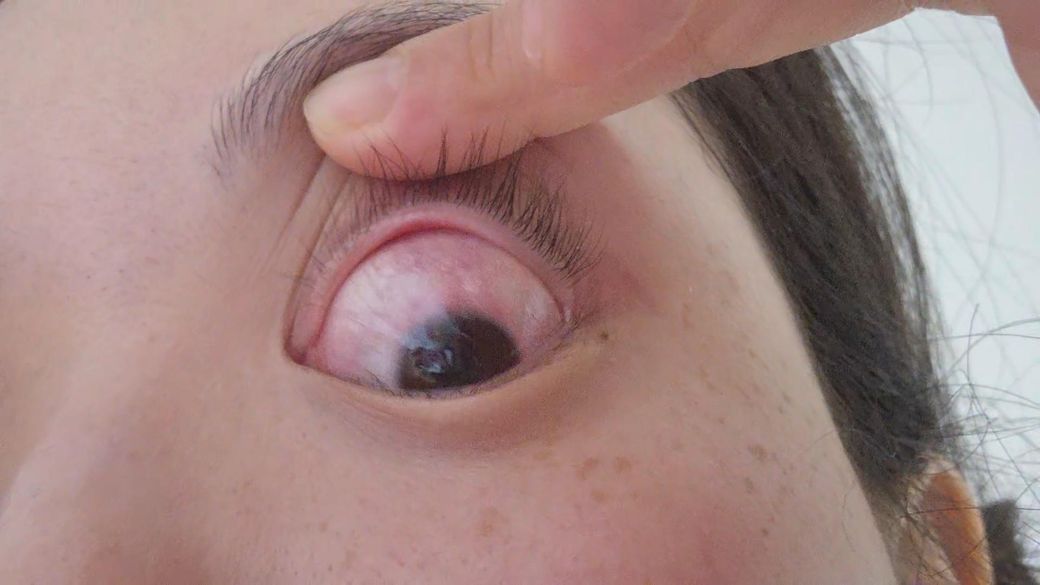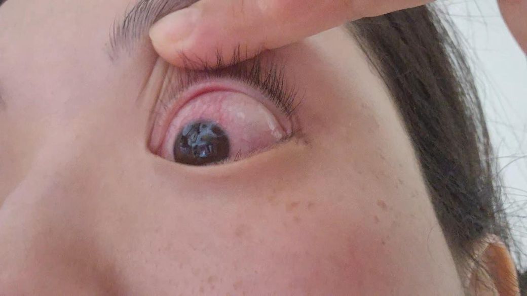 어제 렌즈 착용 후 갈수록 이물감이 심해지더니 저녁에 집에 오니 충혈되어 있었어요ㅜㅜ 시크린원이라는 결막염, 다래끼, 가려움증용 안약 넣어주고 잠들었는데 아직 상태가 이러네요. 눈을 감을 때 약간의 통증이 있고 뻑뻑한 느낌이 듭니다.