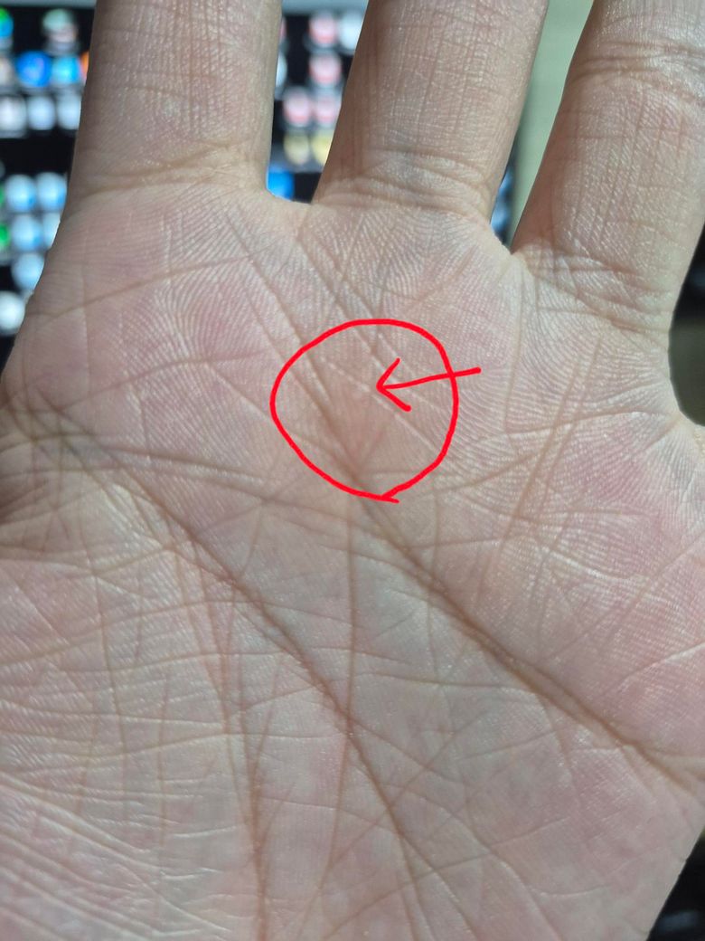 사진상 위치와 설명으로 보면 손바닥 지방패드 아래 작은 결절 가능성이 높습니다. 눌렀을 대 통증이 뚜렷하면 신경이 살짝 압박받는 위치에 생긴 피하 결절일 수 있습니다. 크기 커지거나 통증이 지속되면 정형외과나 피부과 초음파 검사로 확인하는 게 좋습니다.