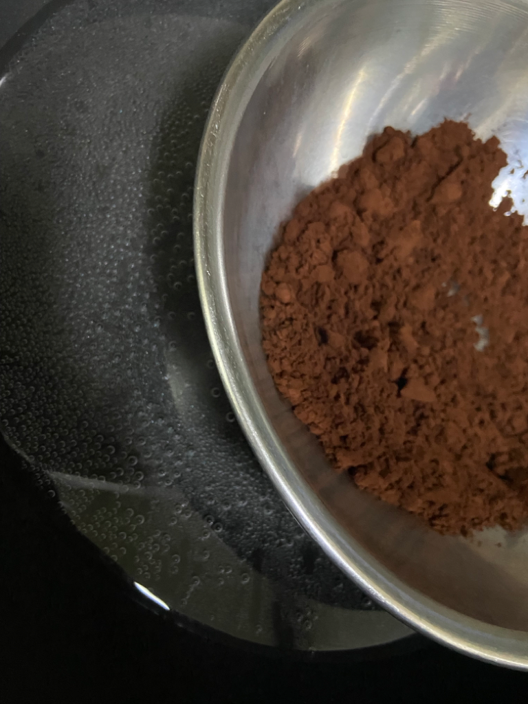 뜨거운 물에 중탕이 가능하려면 중탕하려는 대상내에 물기나 기름기가 있어야 합니다. 시중에 파는 초콜릿은 중탕이 가능하지만 코코아분말은 불가하니 뜨거운 물이나 뜨거운 우유를 섞어 드시는걸 추천드려요.