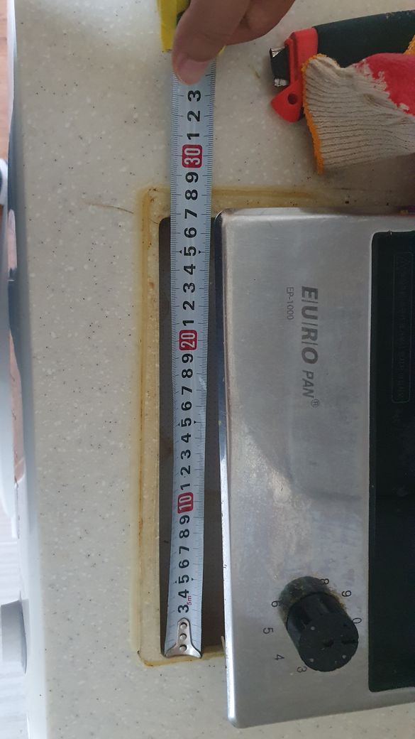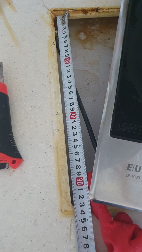 그래서 제품을 뜯어 보니 타공 사이즈가 타공사이즈 33*27*4~4.5로 나옵니다..