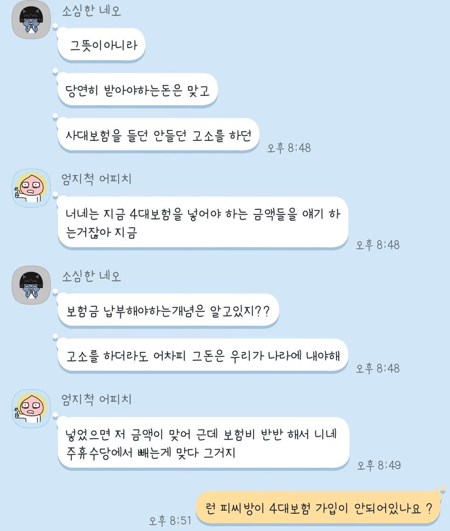 근데 한번도 말씀 안하셨다가 갑자기 보험료 얘기 하시고 ...