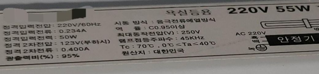 전에 있던 안정기를 보니까 정격전압에는 50W
