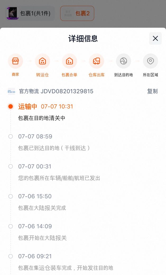 사진처럼 7월7일 패키지는 목적지에서 통관중입니다 라고 뜨는데 운송장조회가 안뜨네요 ㅠㅠ