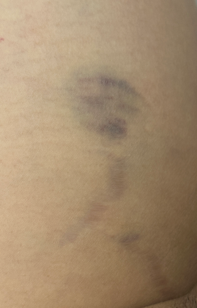 사타구니 병변에 대해 걱정스러우시군요. 하지정맥류를 의심할만한 병변은 아닌 것 같고 멍이 들었을 가능성이 높아보이는데, 시간이 지나도 없어지지 않는다면 멍이 아닌 혈관문제나 색소침착일 가능성이 있겠으니 병원을 방문해보시기 바랍니다.
