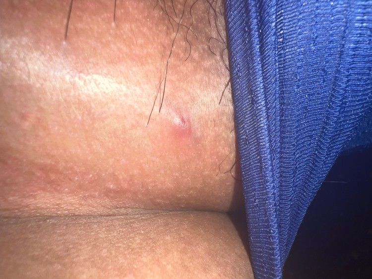 궤양성 병변이 아닌 것이 매독의 가능성은 떨어져 보이며, 수포성 병변도 아닌 것이 헤르페스의 가능성도 떨어져 보입니다. 단순 모낭염일 가능성이 높아 보입니다.