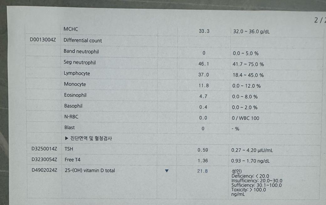 안녕하세요 피검사 결과 문의드립니다.