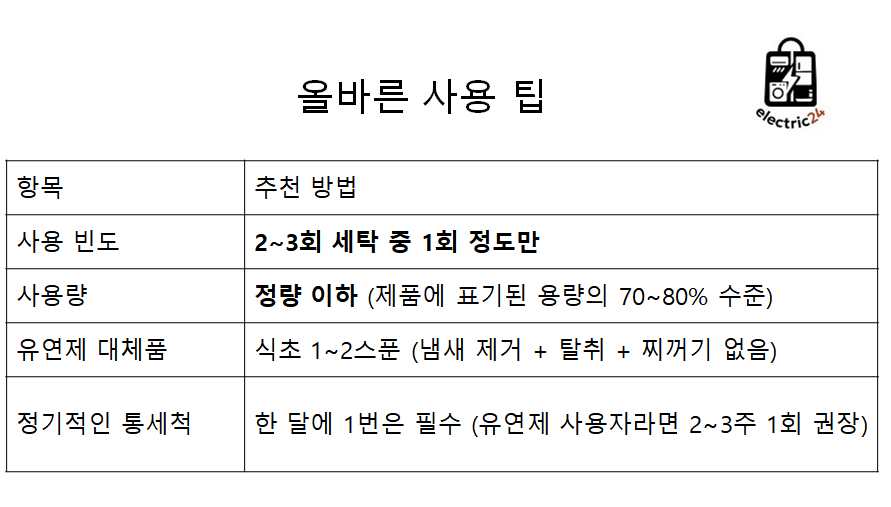 하지만 적정량을 사용하고 정기적으로 세탁조를 청소하면 큰 문제는 없습니다.