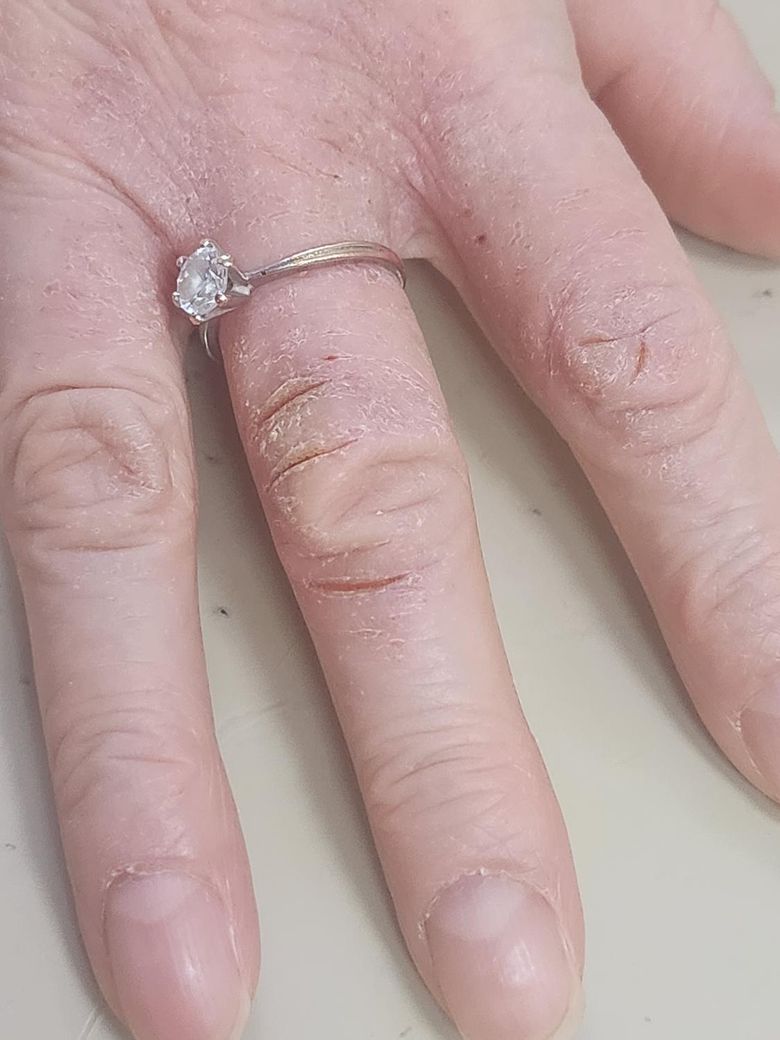 어머니가 치매 중기쯤 되셨는데 2주만에 뵀더니 습진인건지 손등이 붉고 손가락 피부는 가로로 죽죽 갈라져있어요 병원에 갈 상황이 안되는데 집에서 피부 연고 바르고 습윤밴드 붙이고 있어도 되나요? 손가락 관절 부분이 부어서 반지도 안빠진대요.. 너무 속상한데 어디 물어볼 데가 없어 여기에 남겨봅니다