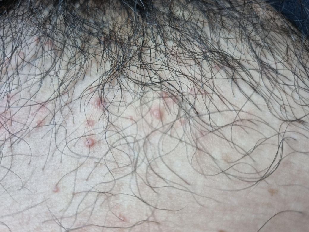 털 모낭쪽에만 붉은 기를 갖추며 발진이있는데