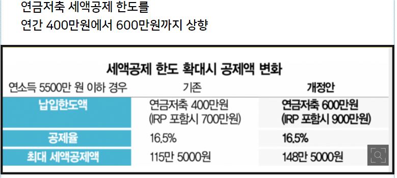 가입한도: 연금저축은 소득에 따라 연간 300만~400만원까지