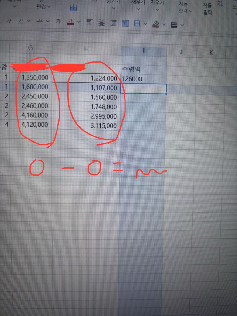 i4셀을 선택 후 컨트롤 + E키를 눌러보세요. 자동채움 단축키라 쉽게 하실 수 있을 거에요. 아니면 i4셀에 보면 십자가 모양이 있는데 거기를 더블 클릭하셔도 가능합니다.