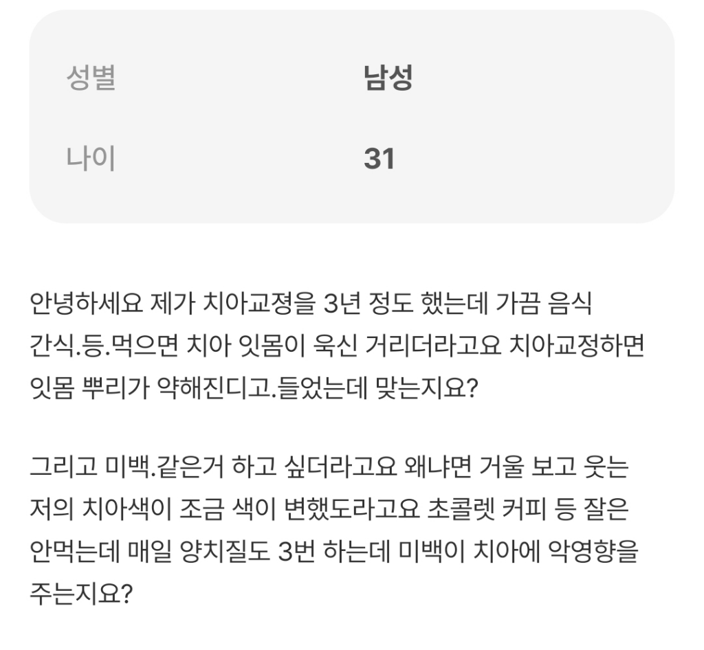 잇몸 자극 -잇몸이 따끔 거리거나 하얗게 헐수도 있습니다.