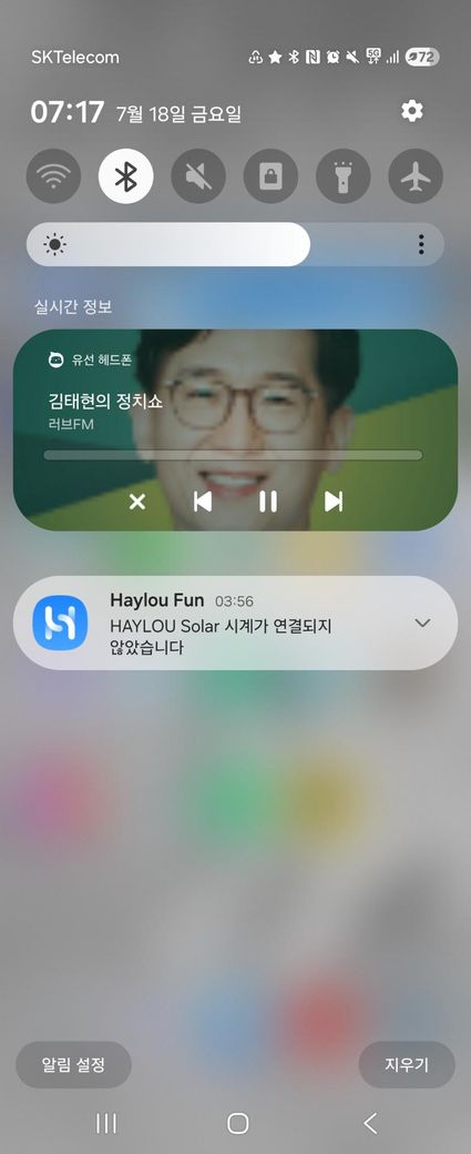 추가로 만약 블루투스로 헤드폰을 연결해서 쓰신다면 헤드폰과 관련된 어플 역시도 삭제 후 재설치 해보는걸 추천 드립니다.