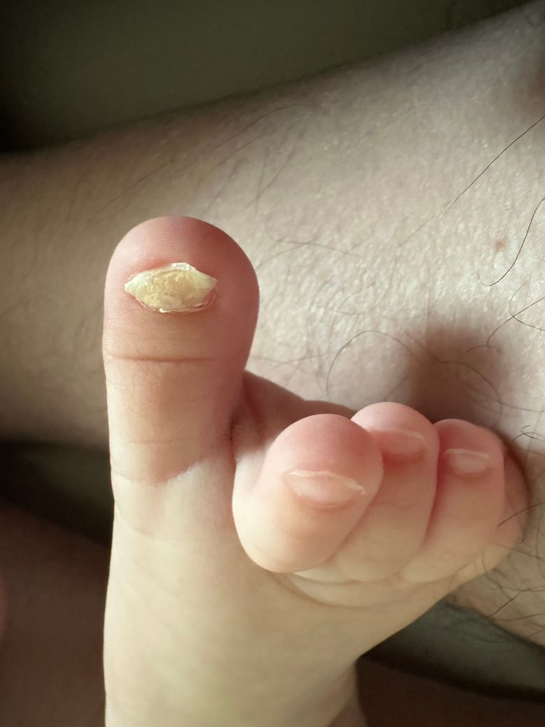 180일 좀 더 된 아기가 엎드린 상태에서 자꾸 발을 매트에 통통 튀기듯이 부딧혀서 그런지 모르겠습니다만 위 사진과 같이 발톱이 들리고 노랗게 변했네요. 자연적으로 두어야 할까요?!