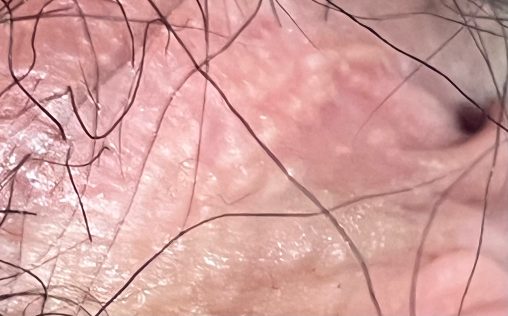 피부병변의 양상상 곤지름일 것으로 판단되지 않습니다. 병적인 단계인것으로 보이지 않으나 우려되는 점이 있다면 피부과진료를 받아보시기 바랍니다.