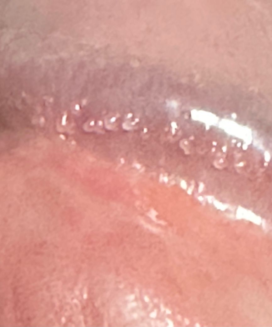 성기 귀두관쪽에 돌기 같은게 느껴져서 카메라로 확대해서 찍어보았는데 물집처럼 보이는 거 같아 여쭤보려고 합니다. 관계는 1주일 전에 가졌고 콘돔 착용하여 관계했습니다. 확대를 안 하면 엄청 작게 보이고 가렵거나 따가운 증상은 없습니다