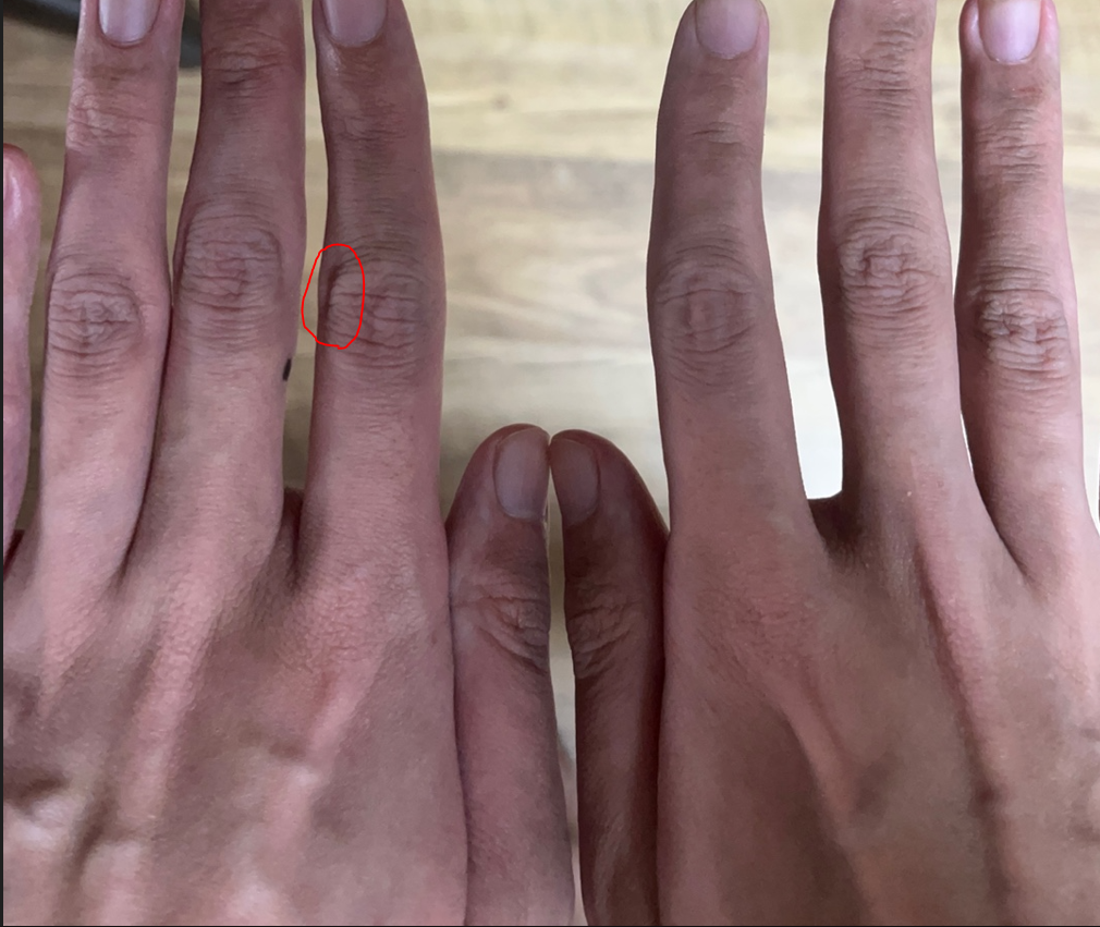 2달전 7월초부터 시작해서 약 2달째 통증부위는 같은 양손 검지 두번째마디(사진의 빨간색동그라미 친 부분)이지만