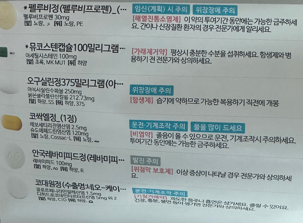 처방뱓은 감기약과 피임약 디어미정과 함께 복용시에 오구실린 정이 디어미의 효과를 저하시킬수 있기에 함께 복용시 이중피임을 하길 권장드립니다.