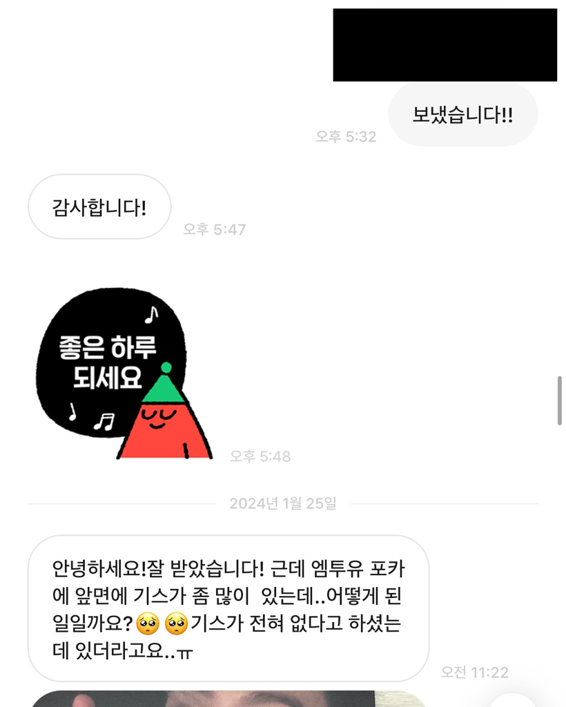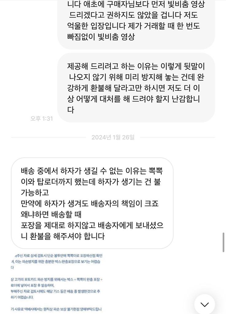 9. 그런 건 절대 아니다, 생겼으면 두 포카에 생겼을 것이다, 택배사에 문의했는데 배송 중 생긴 하자여도 판매자가 환불해 줘야 한다고 하심